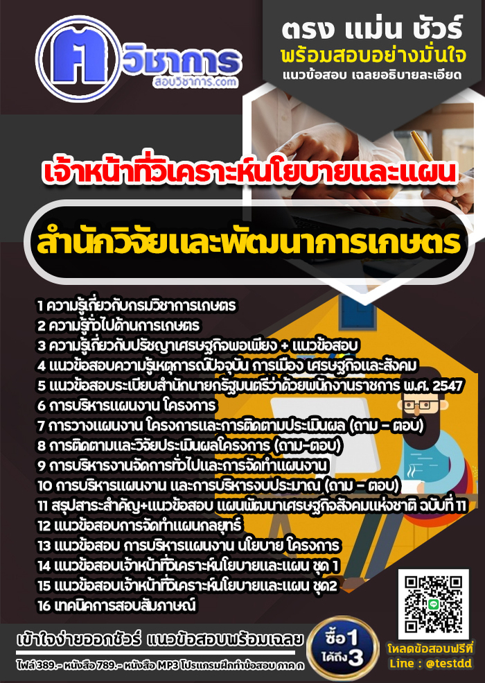 แนวข้อสอบเจ้าหน้าที่วิเคราะห์นโยบายและแผน สำนักวิจัยและพัฒนาการเกษตรจังหวัดแพร่