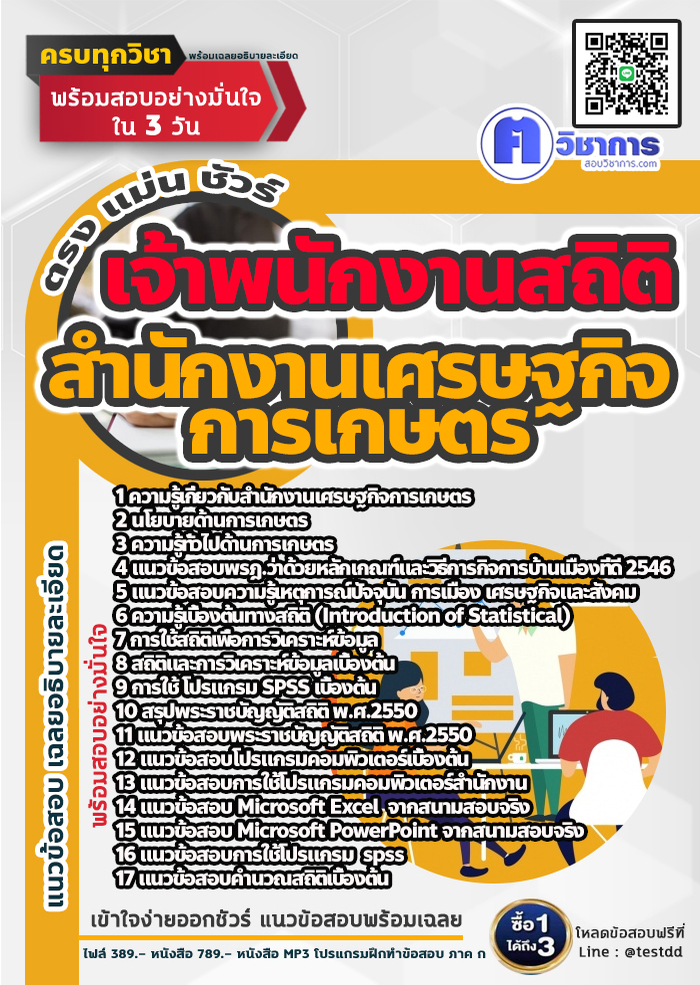 แนวข้อสอบเจ้าพนักงานสถิติ สำนักงานเศรษฐกิจการเกษตรจังหวัดแพร่